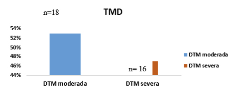 Regarding the degree of severity of TMD, the highest prevalence was moderate TMD, similar data were found in studies by Silva et al. (2014), where the sample of most individuals was Moderate and severe TMD .