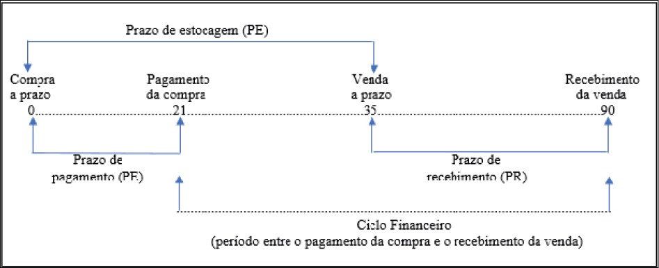 Como visto, cabe monitorar permanentemente os prazos que formam o ciclo financeiro (também conhecido como ciclo de conversão de caixa, conforme Kabuye et al., 2018), que não se refere apenas à gestão do caixa e abrange também a administração do capital de giro líquido operacional (Steffen et al., 2014). Nesse sentido, o ciclo financeiro costuma ser conceituado como o período que envolve a soma dos prazos de recebimento dos clientes e de estocagem das mercadorias, descontando-se o prazo de pagamento de fornecedores (Assaf Neto, 2014; Oseifuah, 2018; Wernke, 2019).