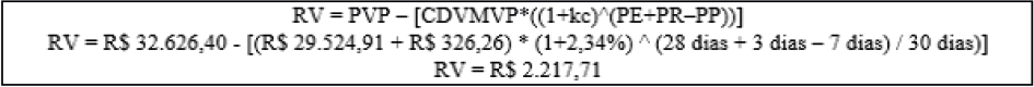 Equação do resultado da venda considerando os prazos do ciclo financeiro
