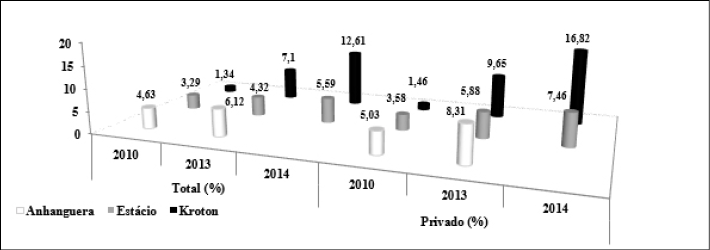 Fonte: elaborado pelo autor com base em Estácio (2014, 2015) e Kroton (2014, 2015).