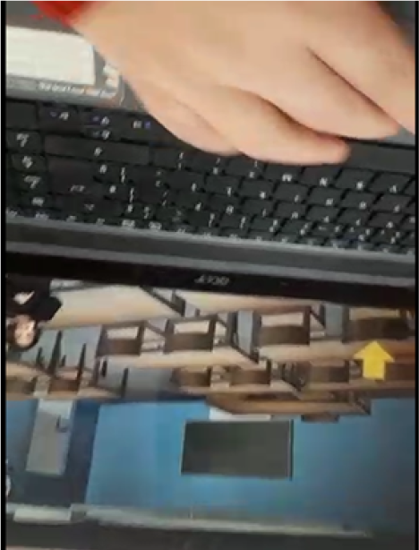O vídeo encaminhado por M1 é decorrente de uma aula on-line, assistida pelo notebook com a filha, com duração de 1 hora e 33minutos. Nesta, a professora projeta uma sala de aula na tela e solicita que os alunos pensem no caminho que precisam percorrer para chegar à carteira de “Júlio” (uma criança ilustrada no desenho). Após a explicação da docente, a mãe pausa o vídeo para que a filha visualize a sala, conforme ilustra a Figura 3.