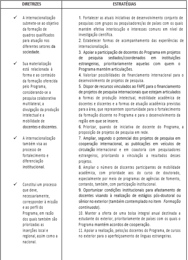 O PPGEd UNOESC, possui como diretrizes e estratégias, conforme seu Plano de Internacionalização (2021-2025):
